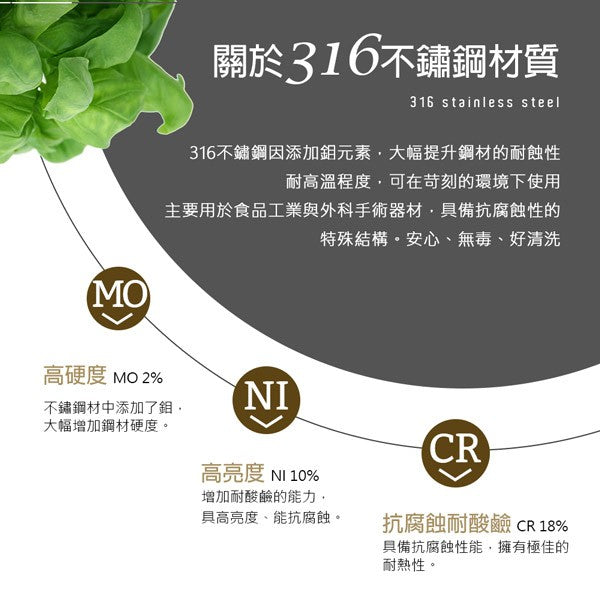 ■ 採用最高等級316不鏽鋼,接觸食物更安心