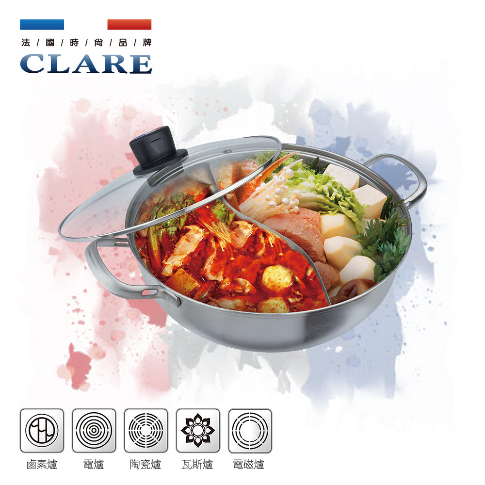 Le idea 樂德兒│CLARE 晶鑽 304不鏽鋼 鴛鴦鍋 湯鍋 火鍋 附蓋