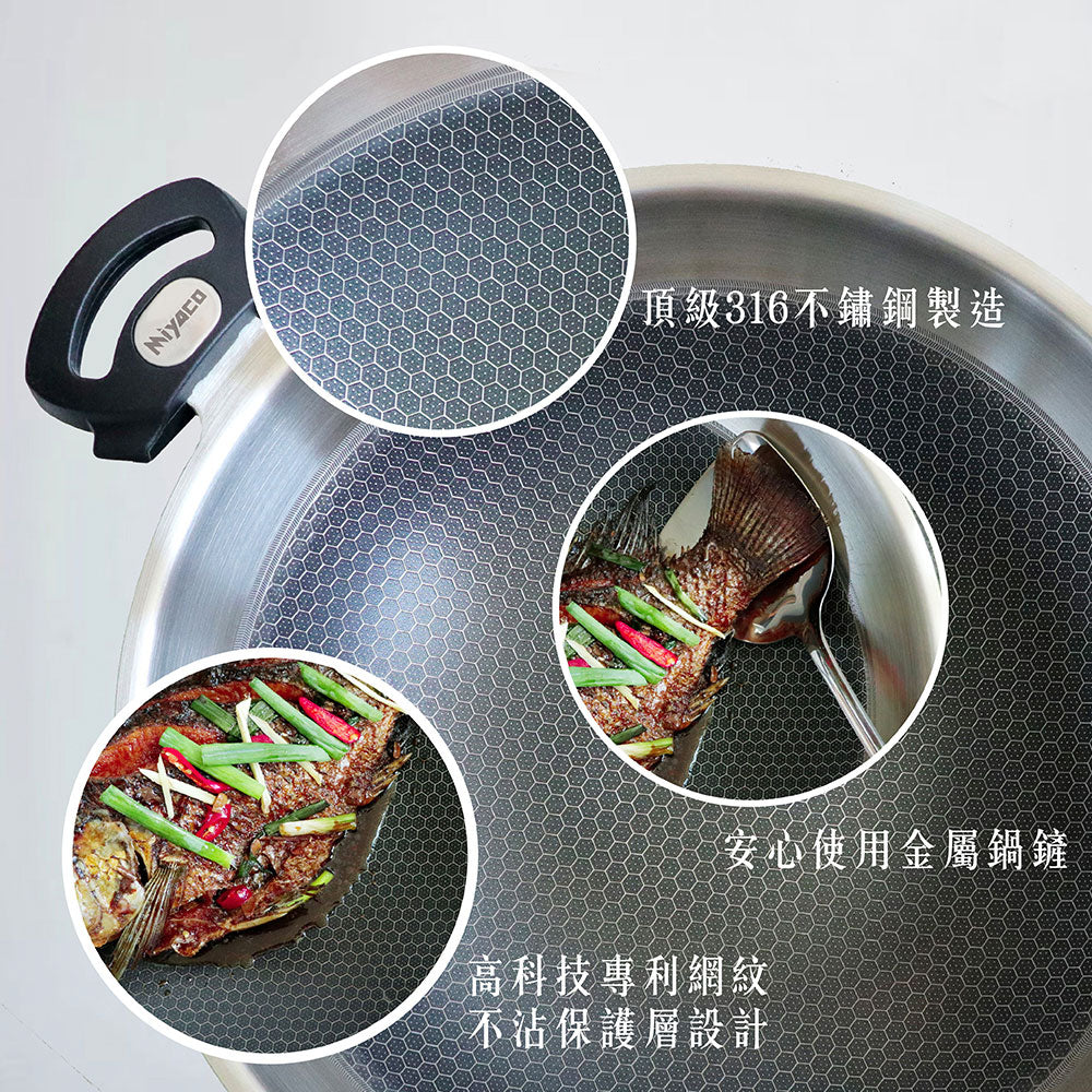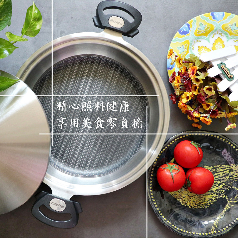 Le idea 樂德兒│Miyaco 米雅可 新型 316不銹鋼 網紋不沾平底鍋 蜂巢不沾平底鍋 IH 附蓋 28cm