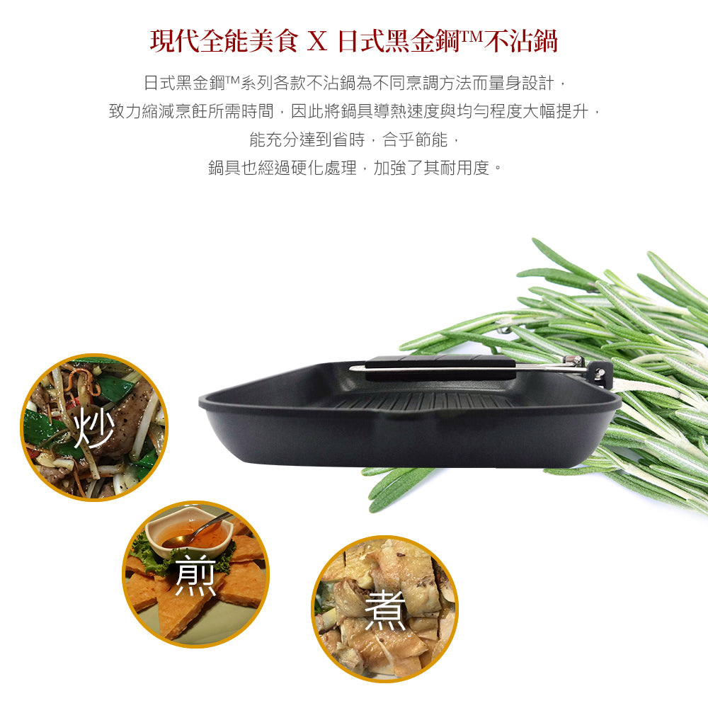 日式黑金鋼折疊煎盤