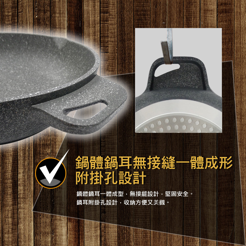 ■ 鍋身一體成型,無鉚釘設計,具高度不沾效果